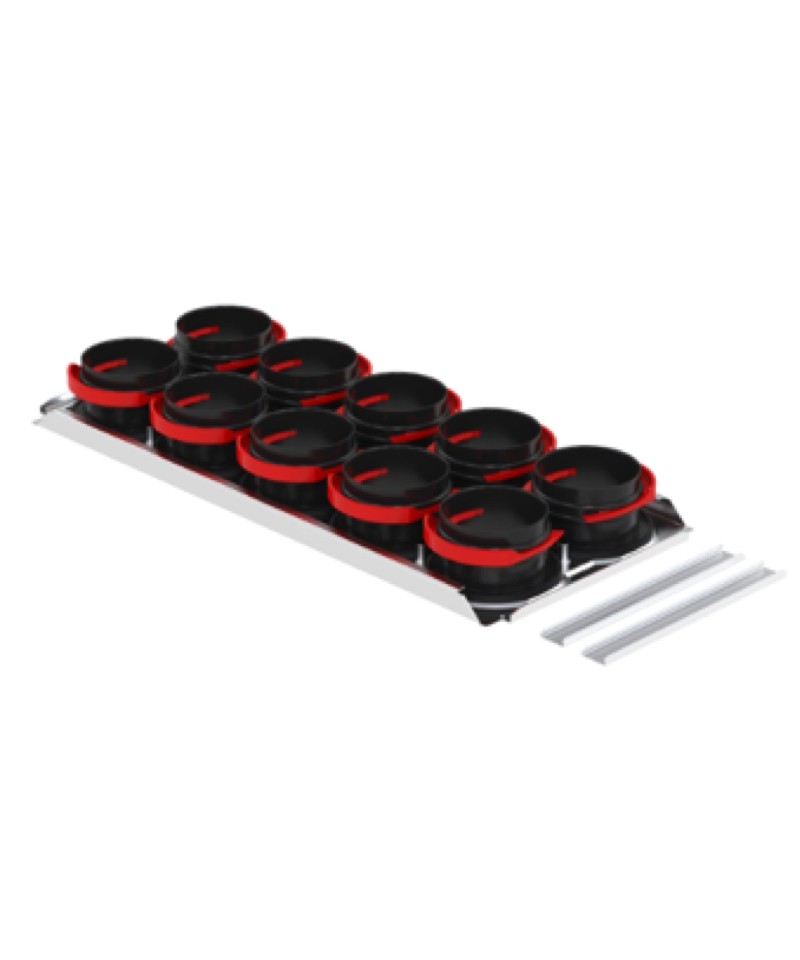 Plaque de raccordement en 10xDN75 (CW-M 520-10xCT75) ou 10xDN90 (CW-M 520-10xCT90) pour caisson silencieux de répartition Zehnder ComfoAir 350 et 550 (CW-S 520) ou caisson de distribution Zehnder ComfoAir 350 et 550 (CW-D 520)