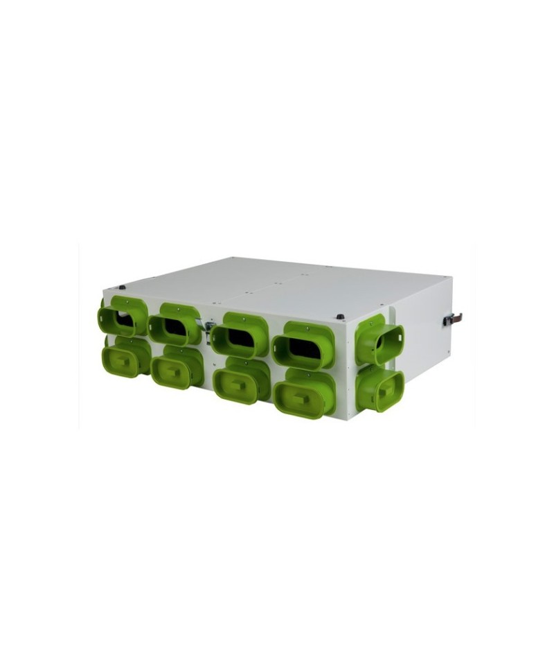 Il permet de connecter jusqu'à 6 gaines semi-circulaires PEHD AE55SC en air neuf et jusqu'à 6 gaines semi-circulaires PEHD AE55SC en air vicié.