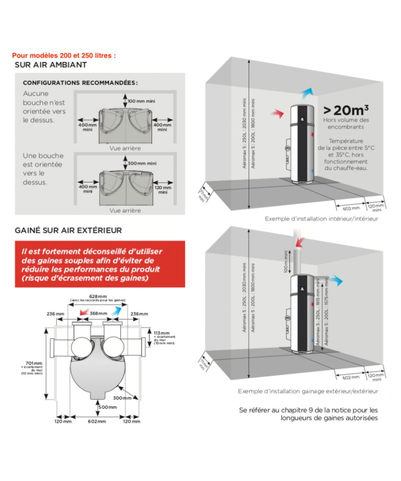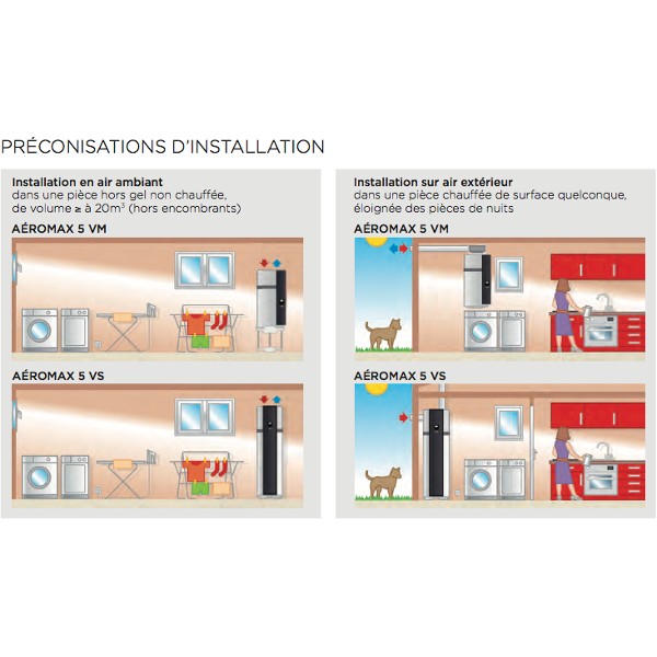 | Réf. | Capacité | P totaleAbsorbée | Puissancerésistance | COPà 15°C | DimensionsH x Ø (mm) | Poidsà vide |