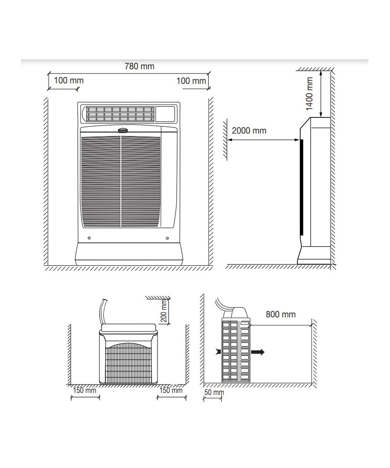 Reprise d'air frontale permettant de placer l'appareil entre 2 murs