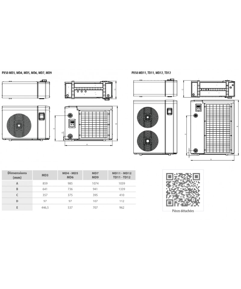 TD12 | WH000437 | PX50 TD12 Triphasé | < 150 m3 | 1339 x 438 x 1039 | 130 Kg |