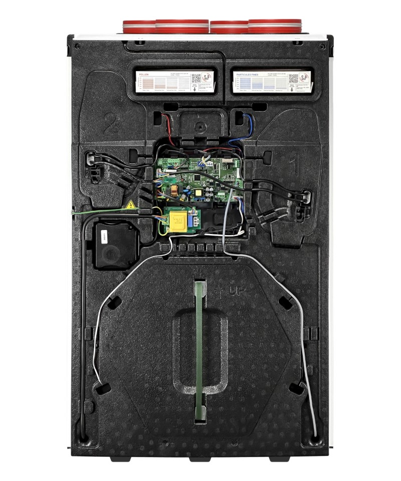 VMC Double-Flux à très haut rendement dédié au renouvellement d'air permanent des logements, du T2 au T7+, jusqu’à 4 sanitaires selon modèle